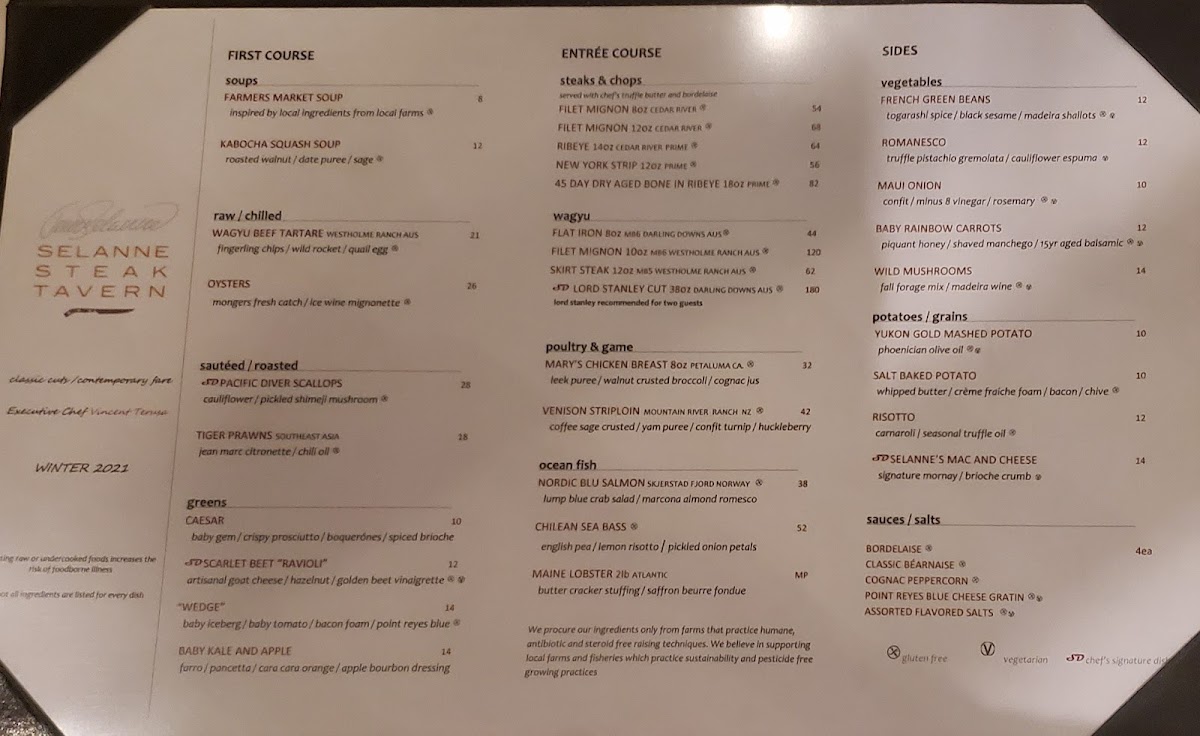 Diners at Selanne will also appreciate the variety in menu selections, with dishes like the Scarlet Beet "Ravioli" and house-made salads prepared with fresh ingredients, catering to both meat lovers and vegetarians alike. Whether you opt for the luxurious lobster mashed potatoes or a classic wedge salad, every dish is crafted with attention to detail, ensuring it’s not just a meal, but an experience to remember.